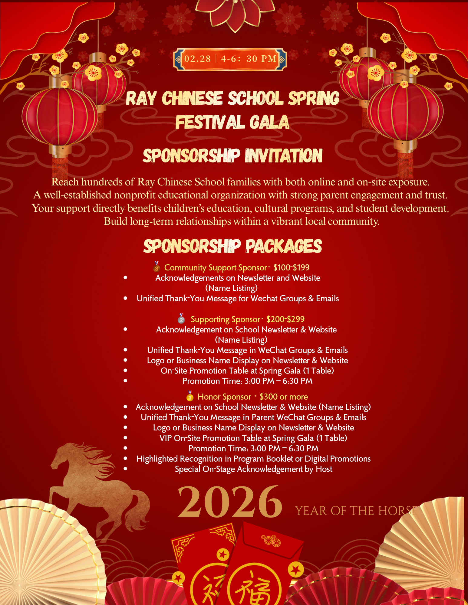 2026年春季学期注课将于今天1月25号晚上11:59截至,过后,加/退/换课操作在系统内关闭。有需要调整的请在截至时间前完成。已经完成注册的家庭请于1月31号前缴清费用,以免入学资格被取消。如有问题,请联系info@raychineseschool.org。